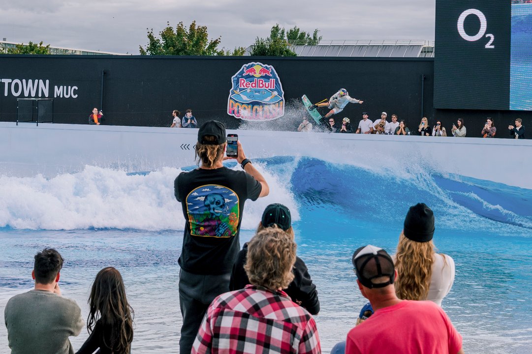 Die ersten Runden mit insgesamt 120 Teilnehmer*innen wurden im Jam-Session-Format ausgetragen, später ging es in Head-to-Head-Heats im Pointbreak-Setting weiter. Zwischen den Heats gab es Party-Wellen und Surfshows von Leon Glatzer, und sogar Wakeboarder Dominik Gührs ließ sich die Chance nicht entgehen, den Pool kurzerhand zum Wakepark umzufunktionieren. Was Kreativität angeht, hat Red Bull natürlich immer ein Ass im Ärmel!