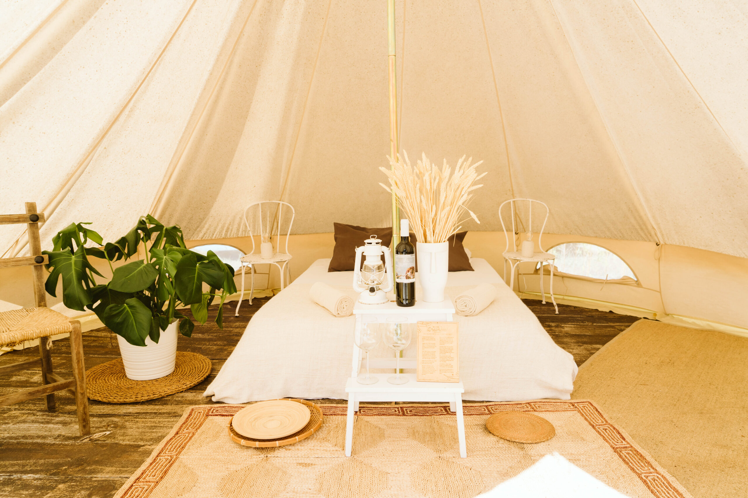 Luxuriöse Zelte mit bequemen Matratzen, Bettwäsche, Handtüchern und Strom. Perfekt für Paare oder Familien, die Privatsphäre und Komfort suchen. Die Glamping-Zelte befinden sich im ruhigen Bereich des Camps und verfügen über exklusive Sanitäranlagen.