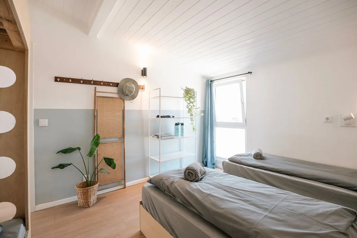 Die günstigste Option im Surfbase Lissabon: Mehrbettzimmer mit komfortablen Matratzen, Bettwäsche & Zugang zu Gemeinschaftsbädern.